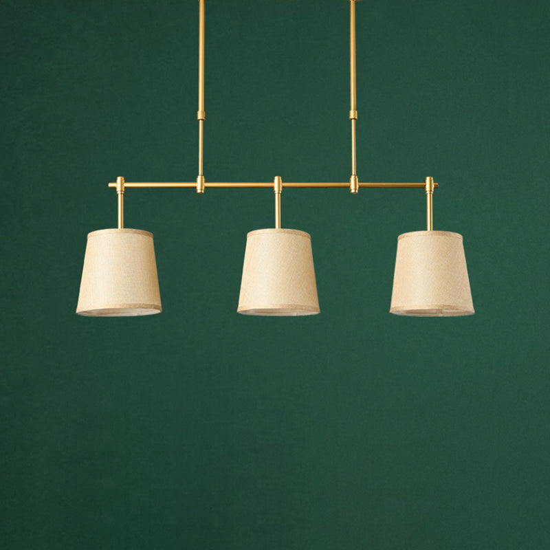 Contemporary Scandinavian Long Round Column Fabric Iron 3-Light Chandelier For Living Room